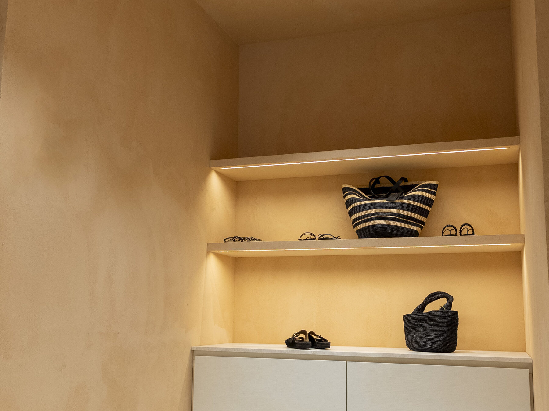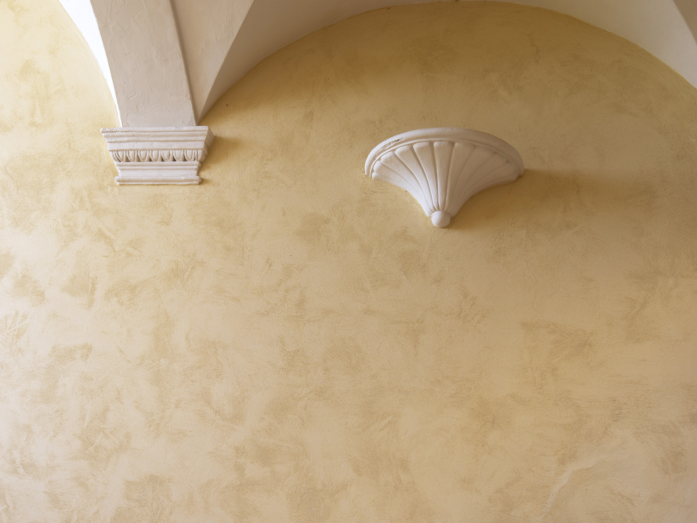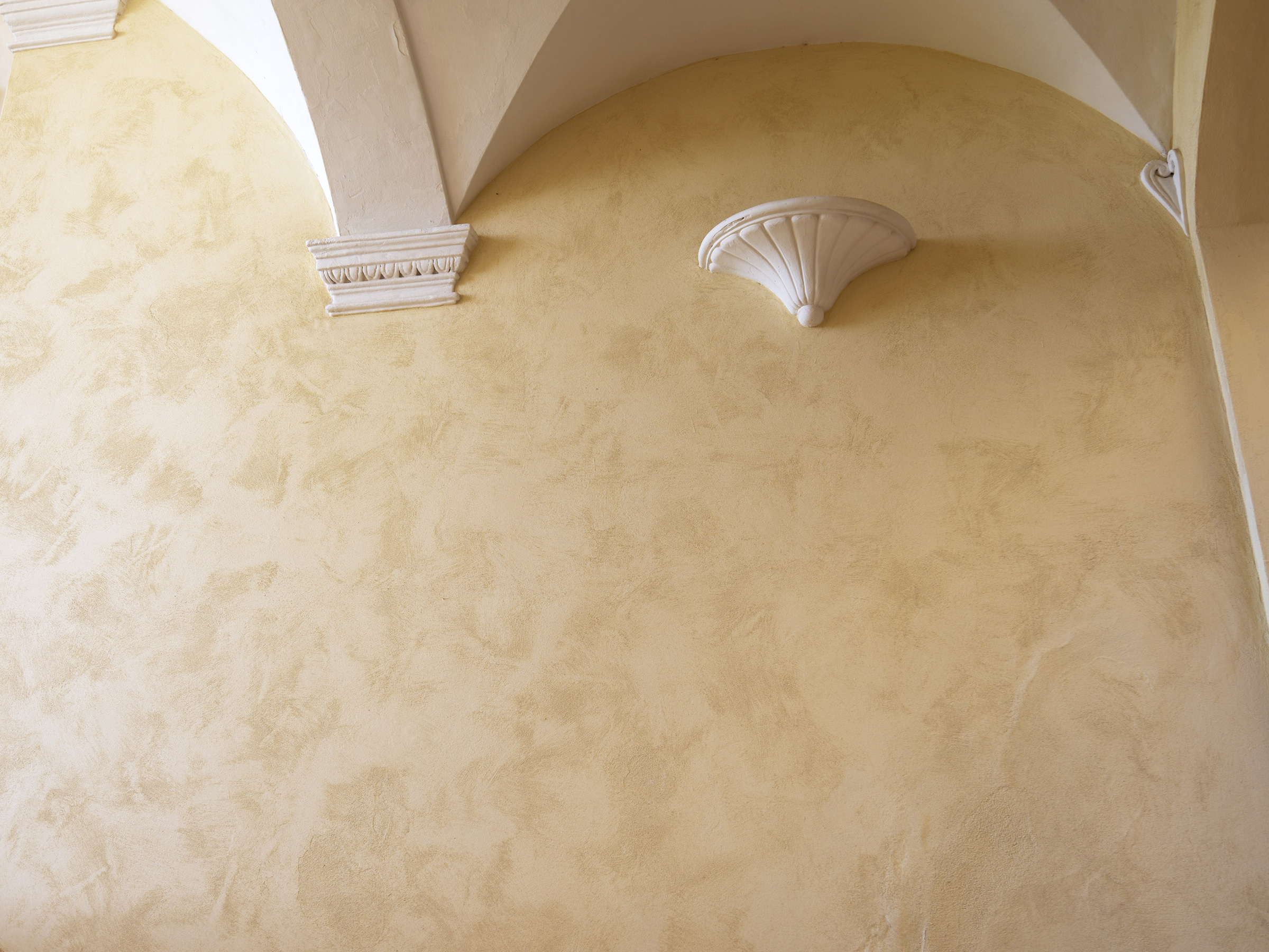 L'applicazione di uno stucco a base di calce spenta su un intonaco decorativo a base di calce è una tecnica rara, resa possibile dall'uso di prodotti tradizionali di alta qualità: Rialto antiqua e Rialto Epoca Spatolato.